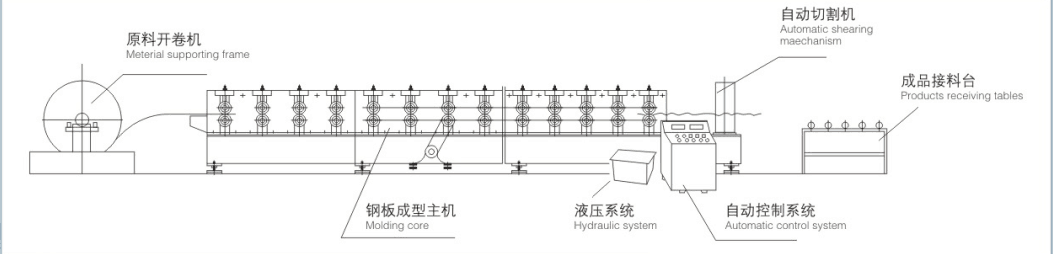 該系列成型機生產(chǎn)的壓型板解決了常規(guī)系列壓型板的屋面滲漏問題,壓型板的連接打破了傳統(tǒng)屋面用螺栓連接的慣例,安裝方法采用45度鎖口咬合安裝,使屋面防水效果更加完好。