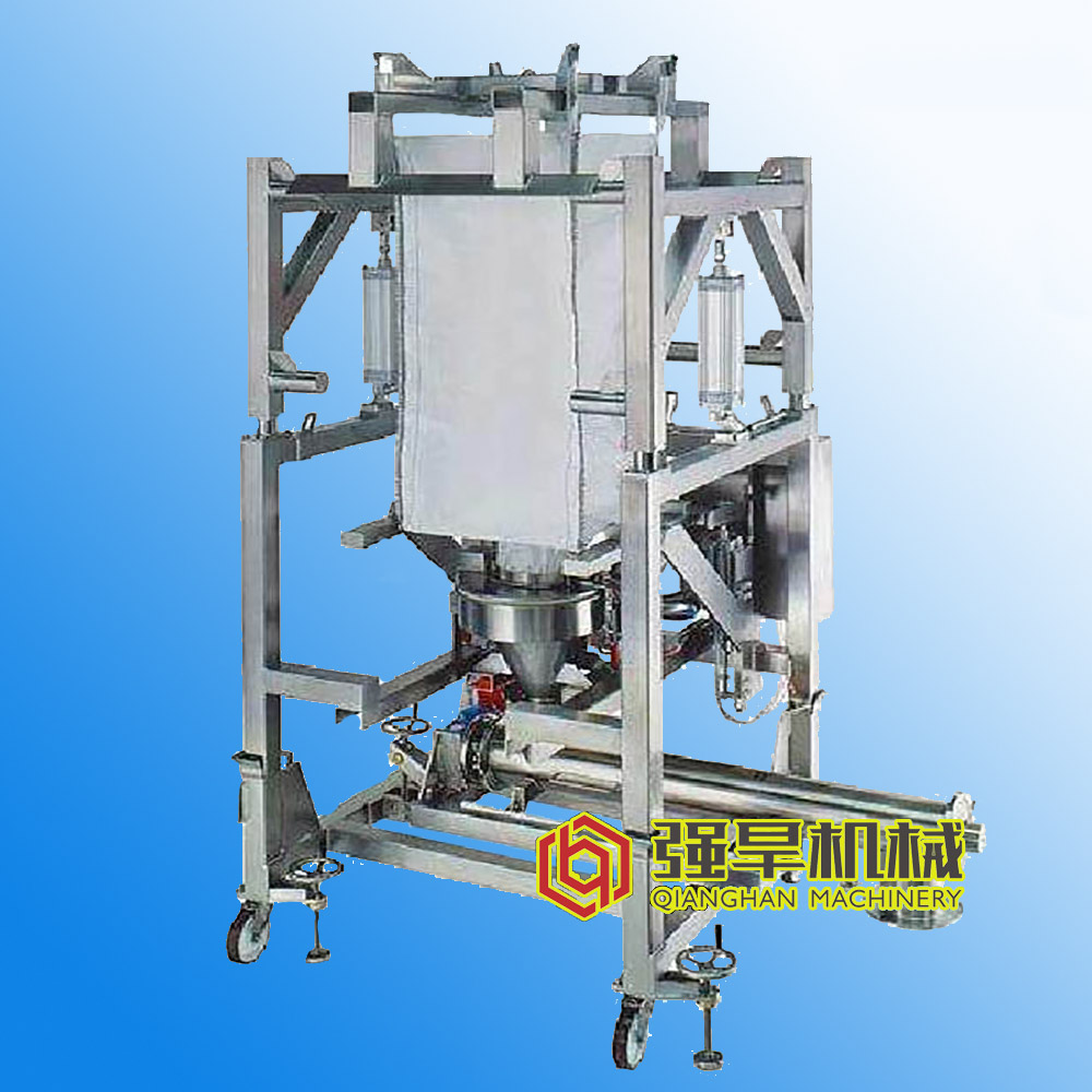 描述:1.通過叉車或打開安裝在噸袋拆包機設(shè)備支架上的電動葫蘆開關(guān),操縱叉車或者將噸袋固定在噸袋吊架上提升至進料口——注意將噸袋固定到吊架上移動到高處時,噸袋下方不要站人。2.夾袋裝置將噸袋固定好,人工將包裝袋下料口拆開——注意人工打開后,及時關(guān)閉艙門,防止粉塵污染工作環(huán)境。3.打開流量控制閥和附帶的振動或拍打裝