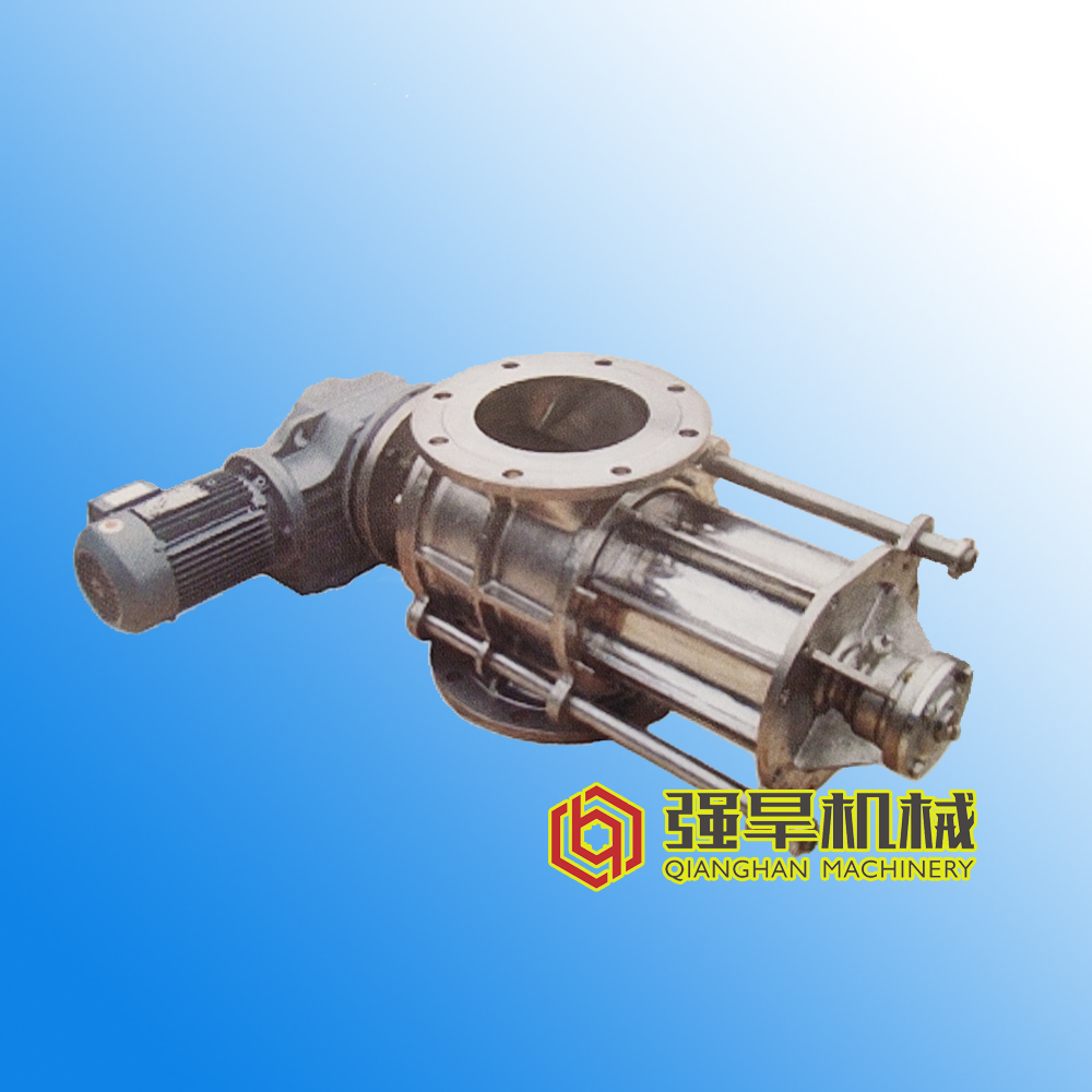 旋轉(zhuǎn)給料閥又稱旋轉(zhuǎn)給料器,是應(yīng)用于粉體(粉沫、顆粒物料、粉?;旌衔铮┹斔拖到y(tǒng)中用來卸料、計(jì)量、除塵、定量輸送、混合、包裝的專用設(shè)備。它主要由主閥,減速機(jī)構(gòu),防護(hù)裝置等三大部分構(gòu)成。主閥有由殼體、端蓋,葉輪,軸承,油封,集氣管等構(gòu)成。精心的結(jié)構(gòu)設(shè)計(jì),使得旋轉(zhuǎn)給料閥具有很好的鎖氣,耐高溫高壓,防卡料等特殊功能。即可單獨(dú)用于化工,環(huán)保,石油,冶金,耐火材料,電力,水泥,塑料,糧食醫(yī)藥等行業(yè)的粉體輸送,也可配置混合加速室與三通換向閥,插板閥配套應(yīng)用于氣力輸送系統(tǒng),除塵系統(tǒng)等。
