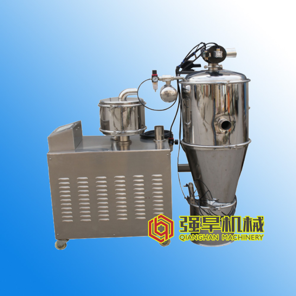 我公司生產(chǎn)的真空加料機是在廣泛吸收國外同類產(chǎn)品的基礎上開發(fā)研制的新產(chǎn)品,目前它是國內(nèi)最為先進、理想、完善的粉狀料、粒狀料、粉粒料混合料的真空輸送設備。真空上料機能自動地將各種物料輸送到包裝機、注塑機、粉碎機等設備的料斗中,也能直接把混合的物料輸送到混合機(如V型混合機、二維混合機、三維混合機等)中,減輕了工人勞動強度,解決了加料時粉塵外溢等問題,是制藥廠、食品廠通過GMP認證、促進清潔、文明生產(chǎn)的首選設備。